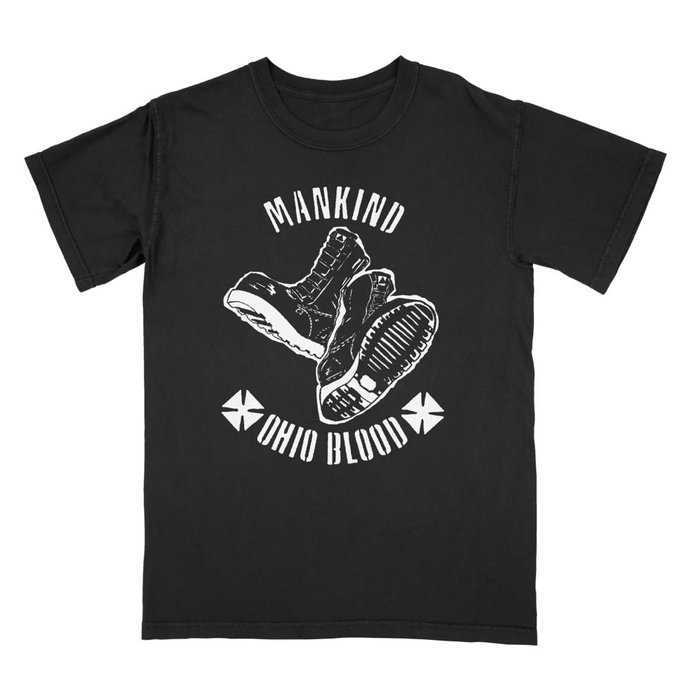 Black Mankind THUROGOOD AF RIP T-Shirt Preorder. Printed on UNION MADE BAYSIDE 5100 HEAVYWEIGHT. Mankind front print, Collyde logo back print. Printed by Hiro Print House.